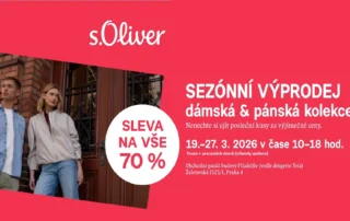 SEZÓNNÍ VÝPRODEJ. Mimořádná akce, pro ženy i muže. Zastavte se v pracovní dny v obchodní pasáži Filadelfie, kde jsme vytvořili speciální prodejní místo pro výprodej dámská & pánská kolekce značky s.Oliver se slevou 70 % na vše. Nenechte si ujít poslední kusy za výjimečné ceny.
